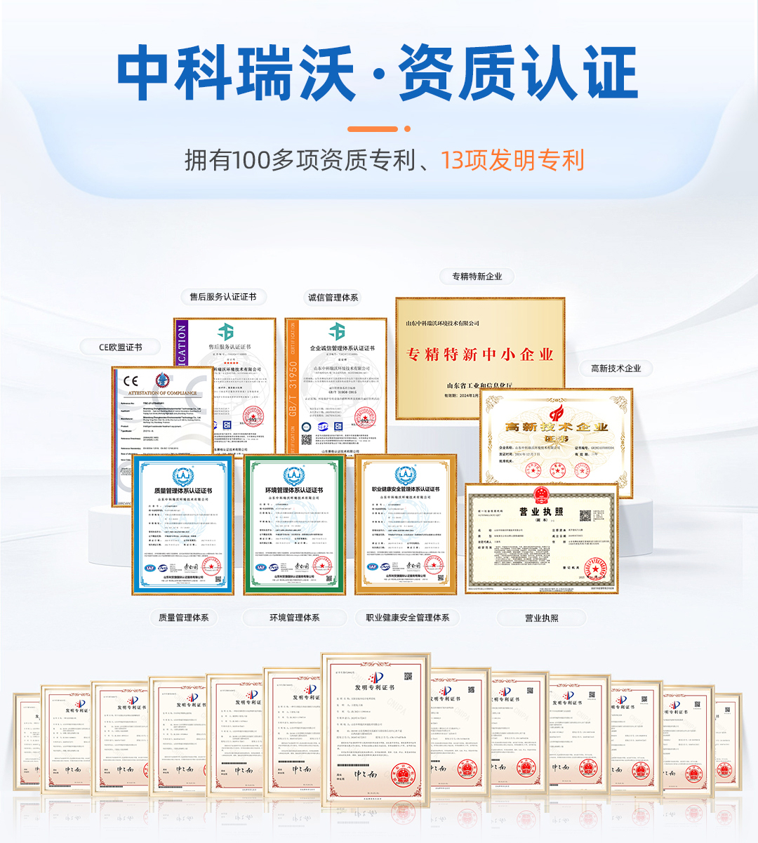 中科瑞沃堅(jiān)持科技創(chuàng)新,科技研發(fā)實(shí)力強(qiáng),有一支具備豐富一線經(jīng)驗(yàn)的研發(fā)技術(shù)團(tuán)隊(duì),近年來(lái)通過(guò)多項(xiàng)國(guó)家實(shí)用新型及外觀設(shè)計(jì)專利;公司生產(chǎn)基地具備《消毒產(chǎn)品生產(chǎn)企業(yè)衛(wèi)生許可證》,產(chǎn)品均在全國(guó)消毒產(chǎn)品網(wǎng)上備案信息服務(wù)平臺(tái)備案,而且都經(jīng)過(guò)了第三方正規(guī)檢驗(yàn)機(jī)構(gòu)的檢測(cè)及歐盟CE認(rèn)證,符合國(guó)家標(biāo)準(zhǔn)及國(guó)際標(biāo)準(zhǔn),通過(guò)了ISO質(zhì)量體系、環(huán)境管理體系、職業(yè)健康安全體系等多項(xiàng)認(rèn)證。體現(xiàn)了公司在生產(chǎn)、管理、銷售和服務(wù)等各個(gè)環(huán)節(jié)規(guī)范化和體系化。并在2024年通過(guò)了國(guó)家高新技術(shù)企業(yè)認(rèn)證,這標(biāo)志著公司在研發(fā)和創(chuàng)新方面得到國(guó)家相關(guān)部門的肯定與認(rèn)可。
