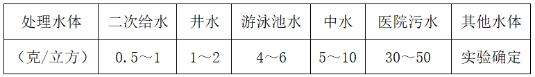 醫(yī)院污水消毒、生活污水消毒、農(nóng)村飲用水消毒、養(yǎng)殖場(chǎng)飲水消毒、城市自來(lái)水消毒、印染廢水脫色處理、高層二次供水消毒