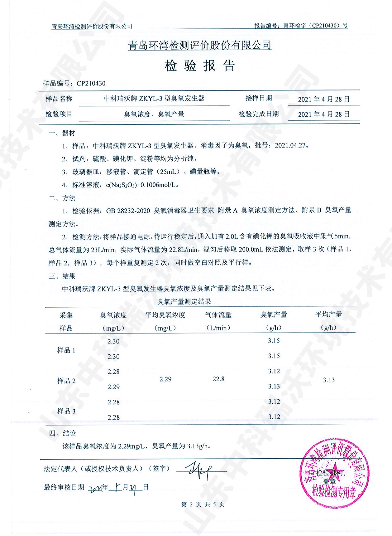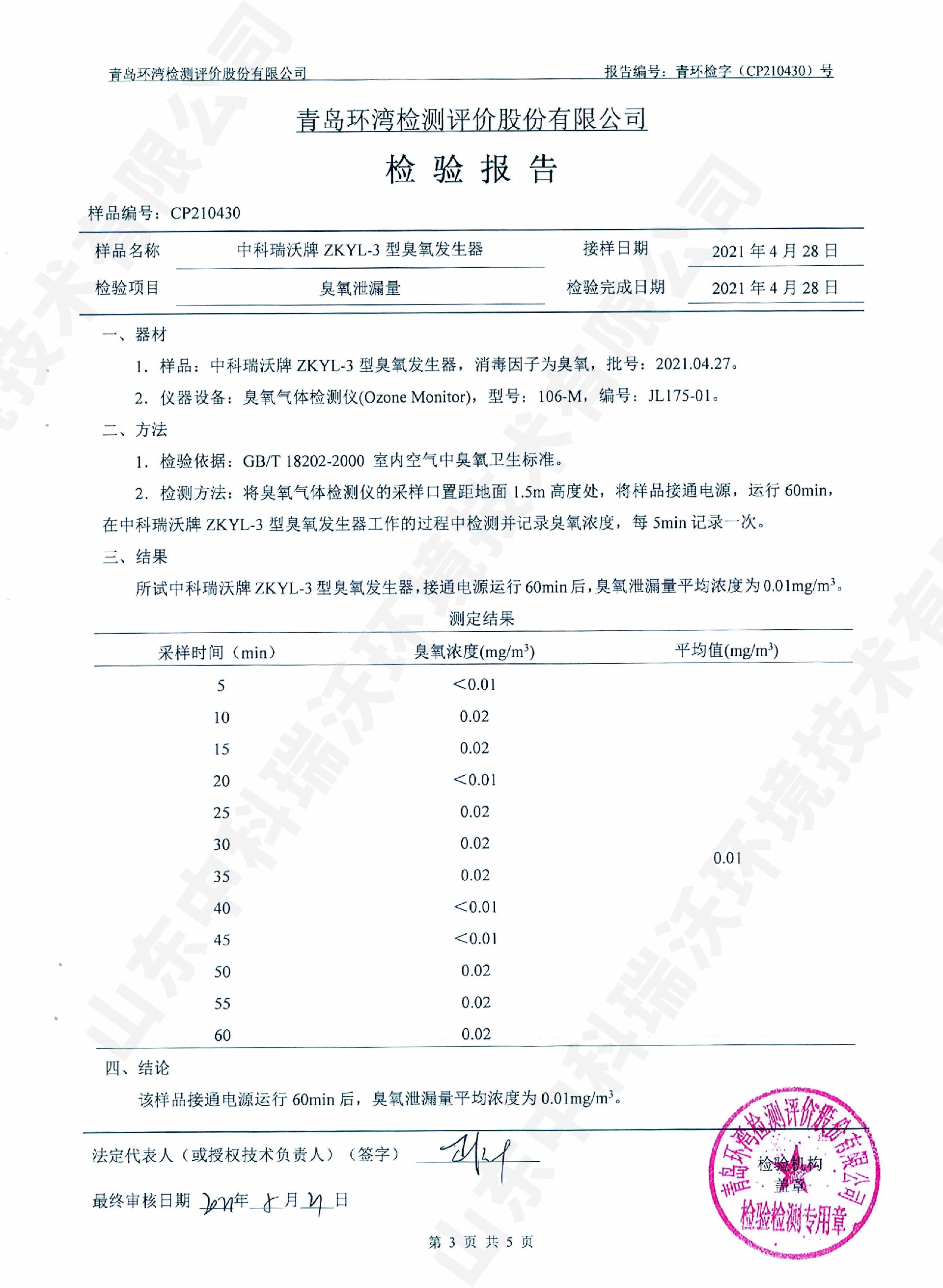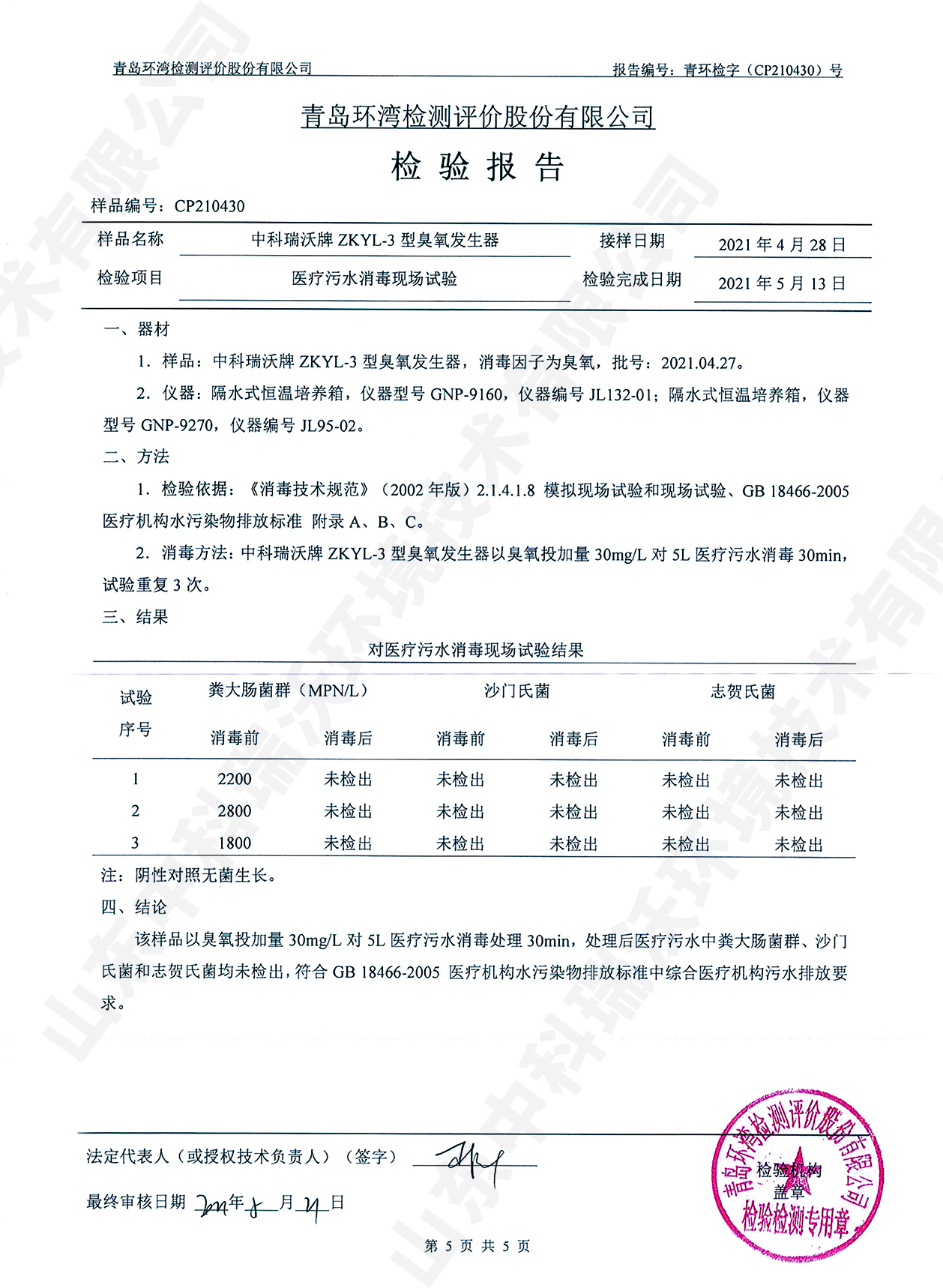 醫(yī)療污水處理設(shè)備檢測報(bào)告~臭氧消毒