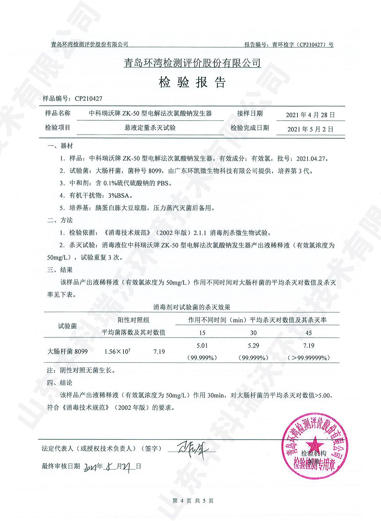 醫(yī)療污水處理設(shè)備檢測報告~次氯酸鈉消毒